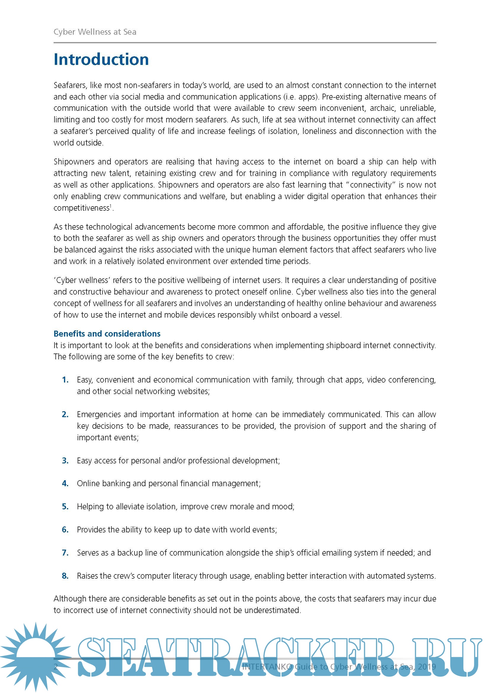 Additional info: This guidance, Cyber Wellness at Sea, is designed to provide practical considerations for shipowners initiating a shipboard