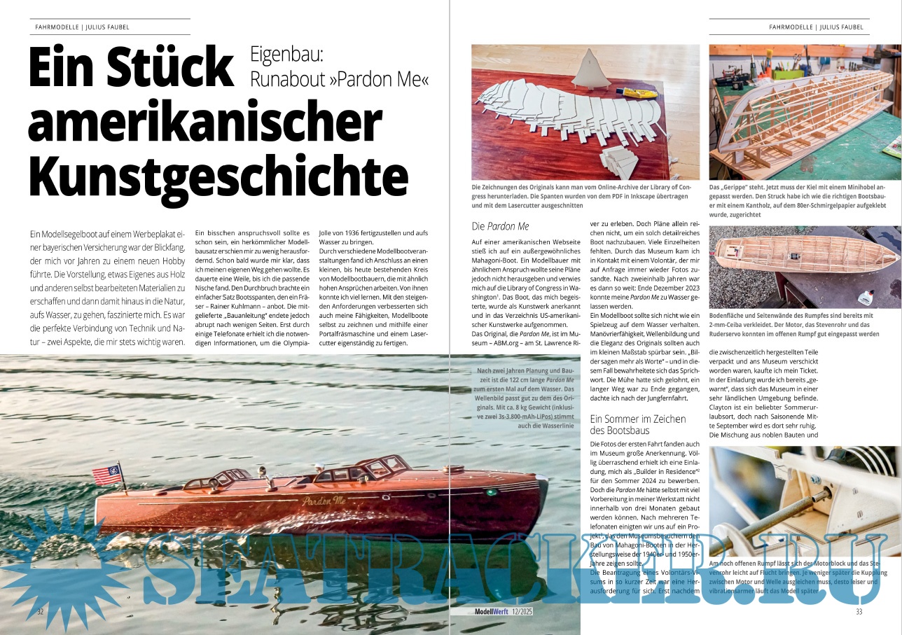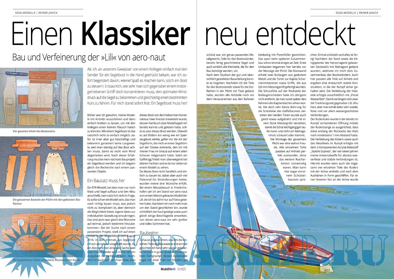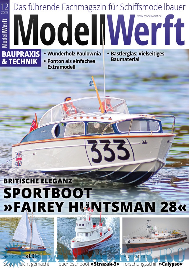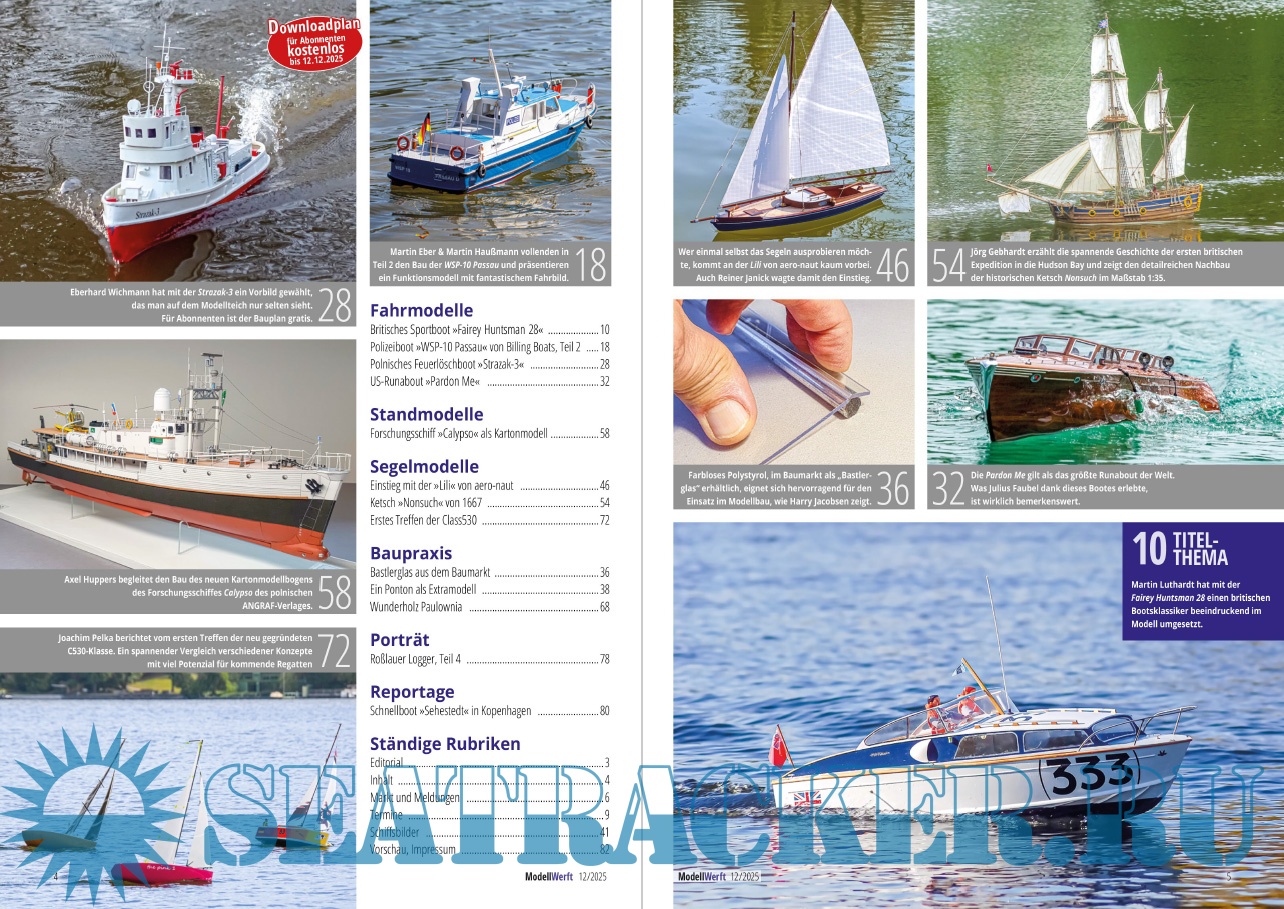 Year: 2025 Language: German Author: Eric Schafenrort (Redaktor) Genre: Periodical publication Edition: 2025-12 Format: PDF Quality: eBook Pages count: 84 Description: Das führende Fachmagazin für Schiffsmodellbauer. Egal ob Stand- oder Fahrmodell, ob kleines Segelboot oder gigantisches Kreuzfahrtschiff. Die Modellwerft informiert über Neuheiten, hilft mit Bautipps und fasziniert mit besonderen Reportagen.