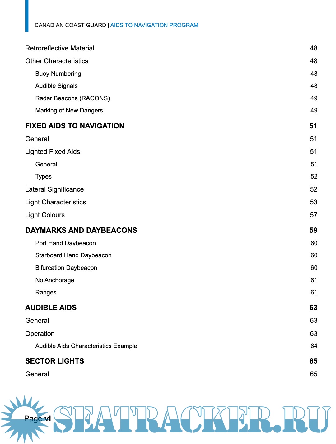 Year: 2023 Language: English Author: Aids to Navigation Program Canadian Coast Guard Genre: Documentation Publisher: Aids to Navigation Program Canadian Coast Guard Edition: 2nd ISBN: 978-0-660-48219-4 Format: PDF Quality: eBook Pages count: 92 Description: The Canadian Coast Guard is pleased to release the 2023 edition of the Canadian Aids to Navigation System publication. This edition replaces the 2011 edition as the new standard for aids to navigation in Canada.