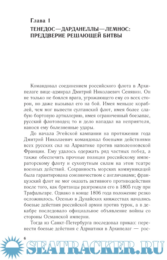 Описание: Книга доктора исторических наук, профессора исторического факультета МГУ Д. М. Володихина посвящена одному из блестящих эпизодов в истории российского флота – победе эскадры адмирала Дмитрия Николаевича Сенявина над турками в Лемносско-Афонском сражении 1807 года. В этой морской битве в полной мере проявилось не только искусство флотоводца, но и мужество и стойкость русских моряков. Книга основана на широком круге документальных источников, в том числе материалах Российского государственного архива Военно-морского флота (РГА ВМФ), многочисленной мемуарной литературе, среди которых воспоминания самого адмирала Сенявина.
