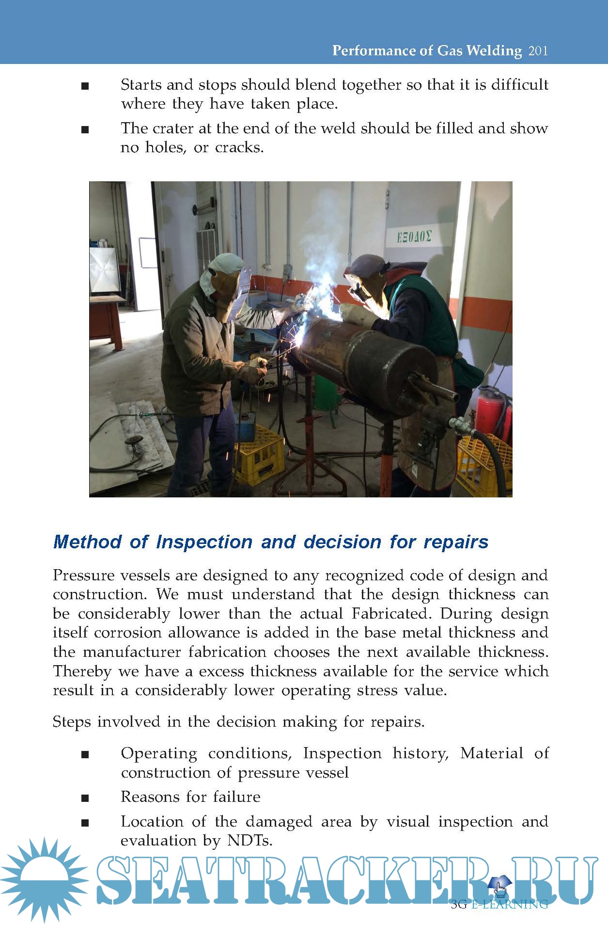 Consists information of basic metallurgy, identification of metals and electrodes, theory of welding processes, identify proper usage of testing methods, welding gases, joint design and configuration, welding positions, welding currents and polarity.