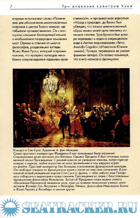Описание: Романтика морских просторов... В наше время эти слова воспринимаются как клише. Но были времена, когда семи-восьмилетние мальчики оставляли отчий дом, отправляясь на ее поиски. С той минуты, как они юнгами поднимались на борт своего первого корабля, море навеки приковывало их к себе, становясь и домом, и даже могилой. Повзрослев, они теряли иллюзии, а на смену детским мечтам приходили конкретные цели. Кто-то, подобно благородным капитанам Джеймсу Куку и графу де Лаперузу, был готов рисковать ради интересов своей Родины и открывать для нее новые территории - трудно представить, сколько было еще тогда на карте мира белых пятен! А кто-то, подобно безжалостным пиратам Тичу Черной Бороде или Генри Моргану, стремился разбогатеть, пусть даже ценой погубленных человеческих жизней и потопленных кораблей. Но в конечном счете и те и другие были отчаянными храбрецами, они бросали вызов грозной стихии и нередко выходили из схватки с ней победителями!
