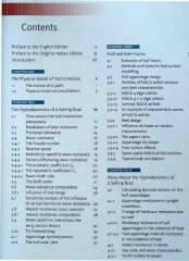 -The Physical model of yacht motion The hydrodynamics of a sailing boat Hull and keel forms More about the hydrodynamics of sailing boat Sailing boat aerodynamics Steady state dynamics of a sailing boat More about sailing yacht dynamics Physical model testing Performance prediction The use of numerical method in yacht design Elements of fluid mechanics Elements of boat hydrostatics The ORC international rating rule