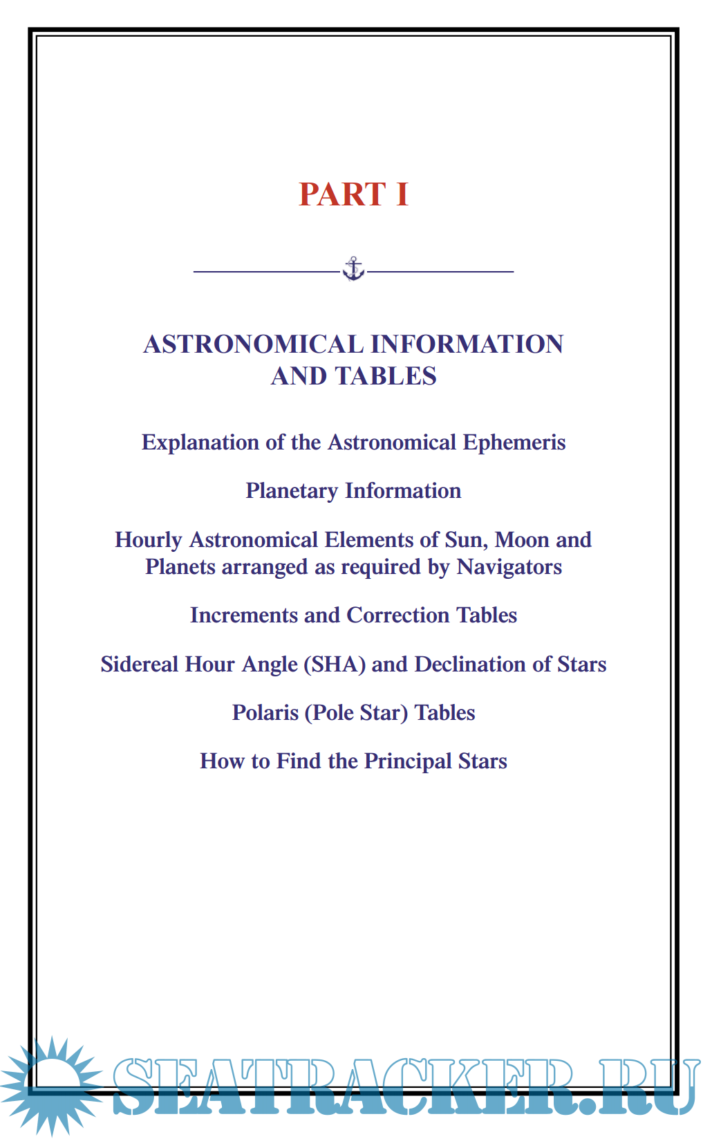 The Almanac is arranged in parts that are numbered for ready reference from I to VII: