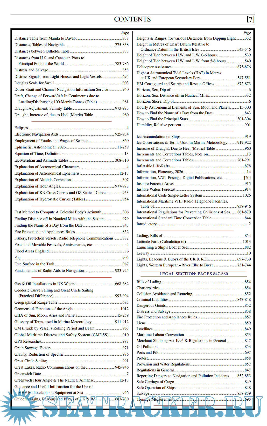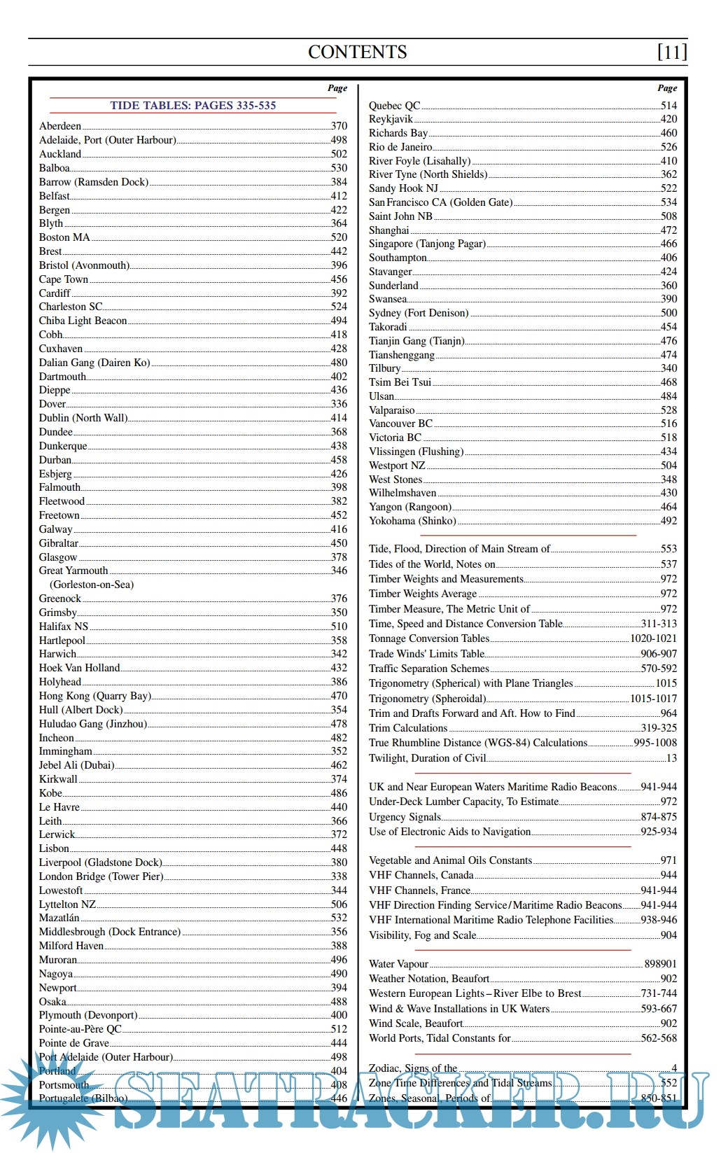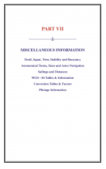 VII Miscellaneous Information covering Stability, Buoyancy, Celestial, Sailings and Navigation. The Pilotage Information section has been revised to conform with notices issued by Admiralty, Hydrographic Authorities and Port Authorities.