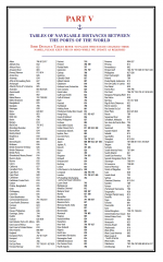 V Navigable Distance Tables giving a world-wide coverage of total distances from the principal ports of Britain, U.S.A. and Canada, to all important ports of the world.