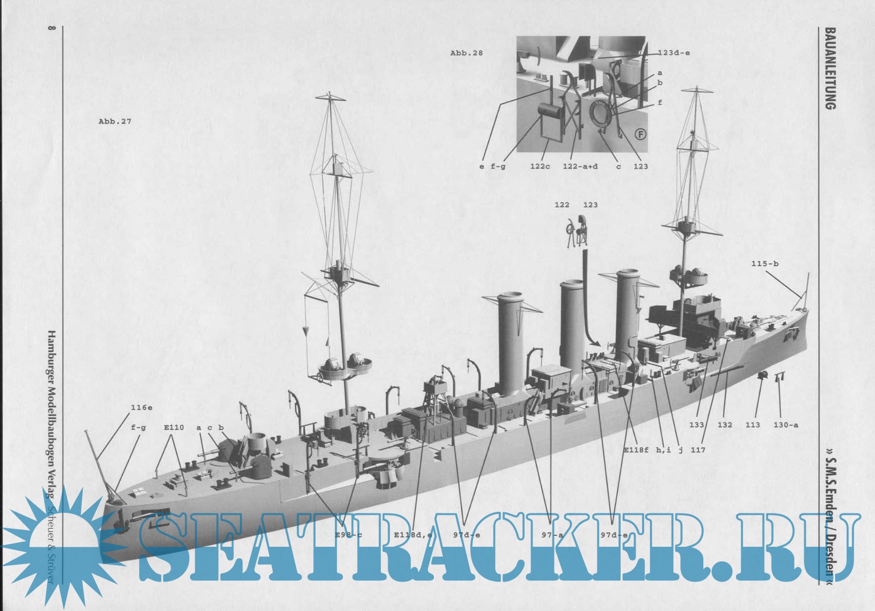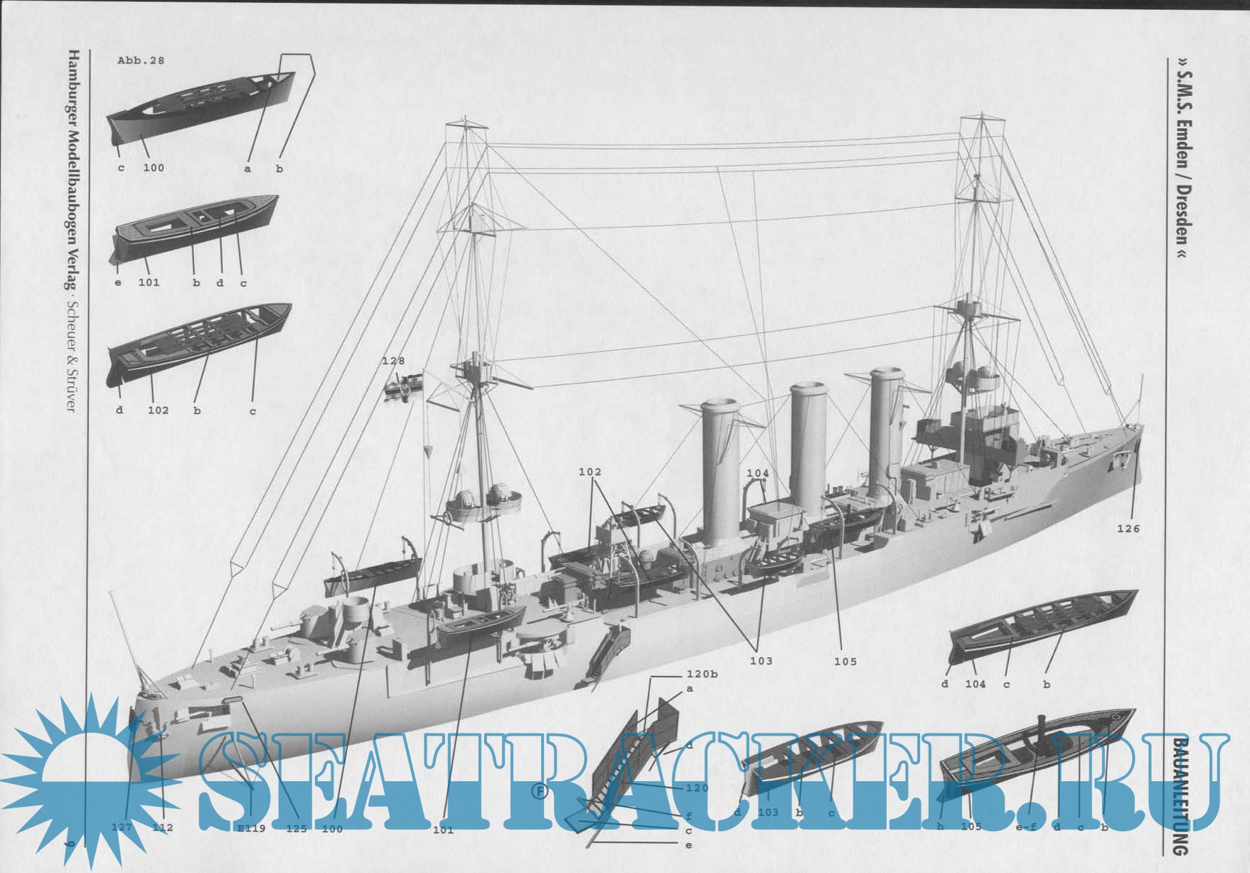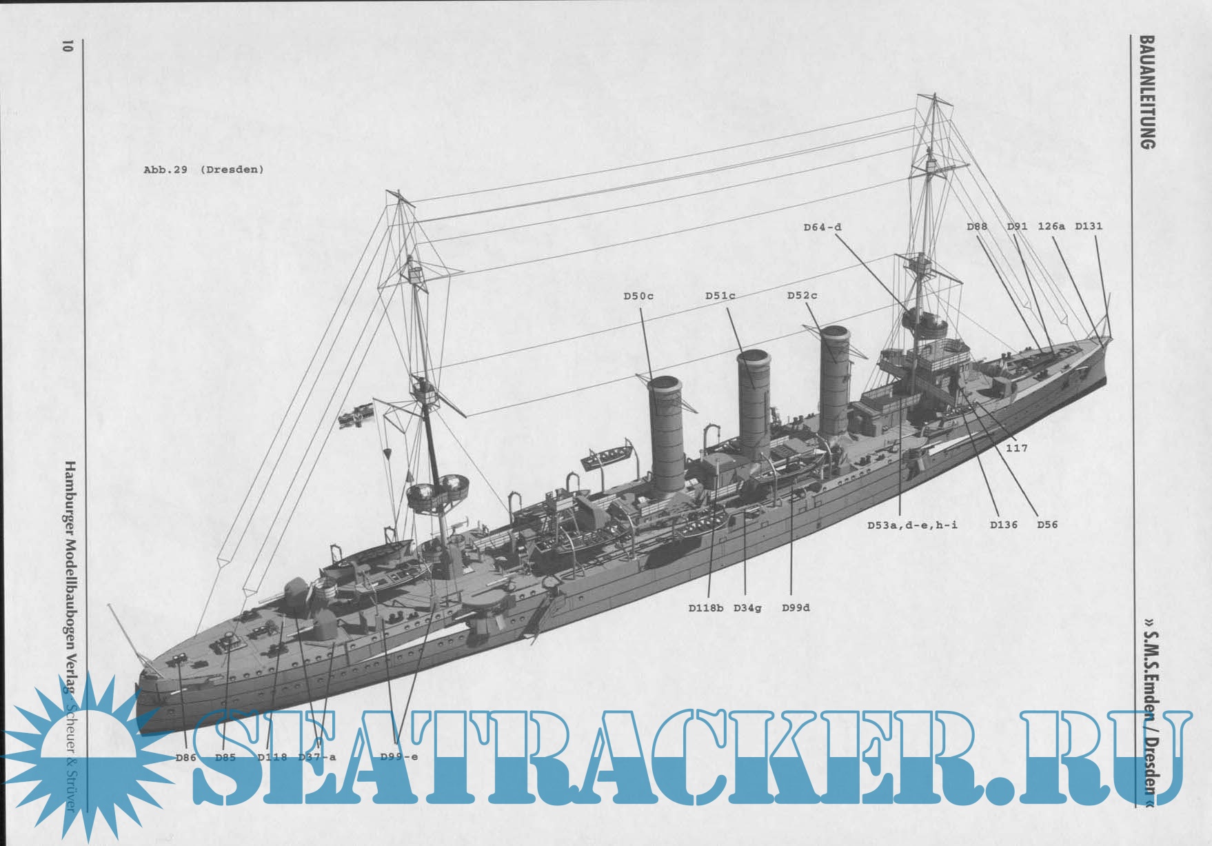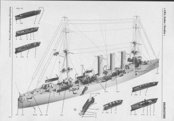 26 листов цветных выкроек и описаний для изготовления бумажной модели лёгкого крейсера S.M.S. "Emden" Германия 1910 годСкриншоты