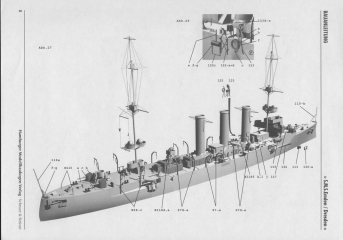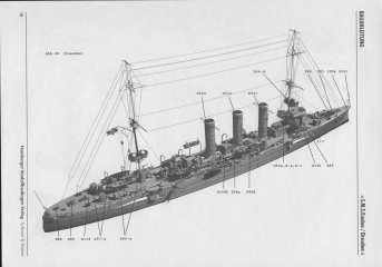Описание: 26 листов цветных выкроек и описаний для изготовления бумажной модели лёгкого крейсера S.M.S. "Emden" Германия 1910 год