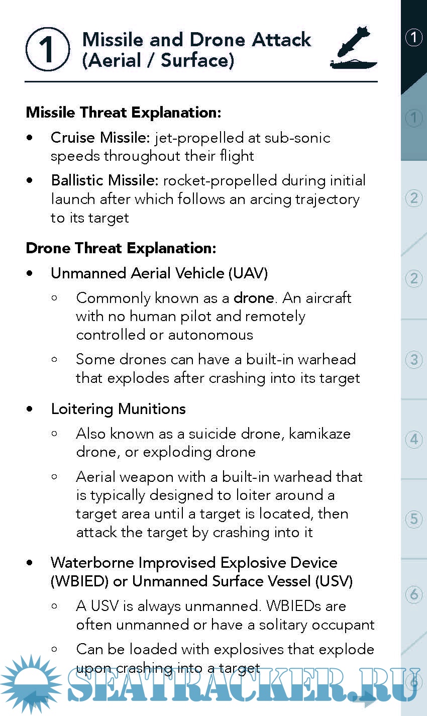 Year: 2024 Language: English Author: JMIC Genre: Other Publisher: Joint Maritime Information Center (JMIC) Edition: December 2024 Format: PDF Quality: eBook Pages count: 16 Description: The Joint Maritime Information Center has released an updated set of quick reference 'bridge cards’ for the Middle East region. The cards cover a wide range of potential security events in this region and can help masters and crews prepare for and respond to incidents. Bridge cards are quick reference guides that aim to support seafarers during times of tension caused by piracy attacks or other security threats. They summarize and present important information in a clear, unambiguous, and easy to perceive manner, including reporting routines, contact details of regional reporting centers, how to detect a suspicious approach or attack early on, as well as recommended actions that can be taken in response to a number of malign activity situations. While the cards are complementary to the information provided in a ship’s own security plan, BMPs, and security charts, they can be a useful safety aide memoire for masters and crews to follow when transiting the high-risk areas. We therefore encourage ship operators and Masters to take the guidance provided in the above referenced bridge cards into consideration in circumstances where their vessels may be exposed to security risks. * The Master retains full Responsibility for the vessel’s action!