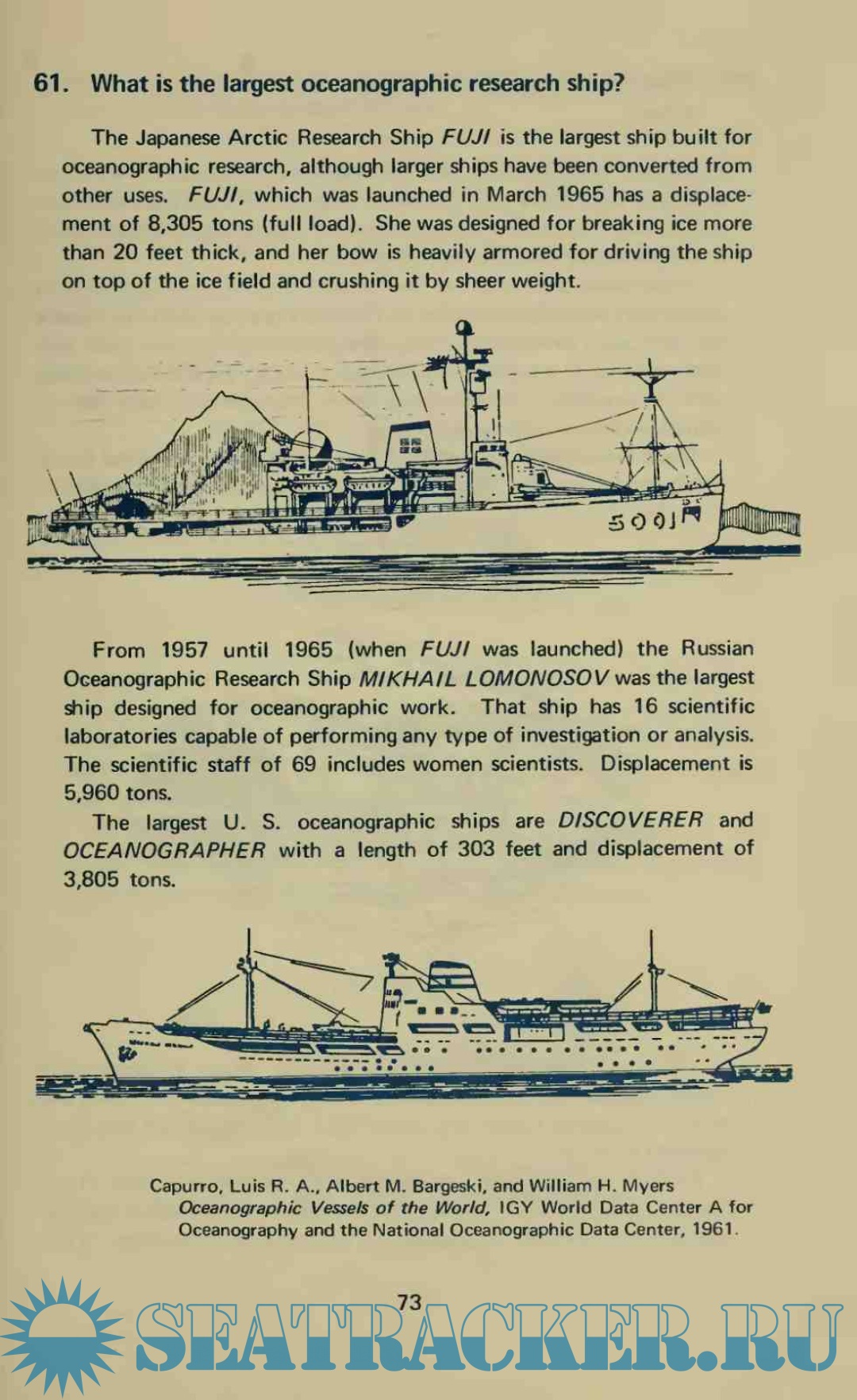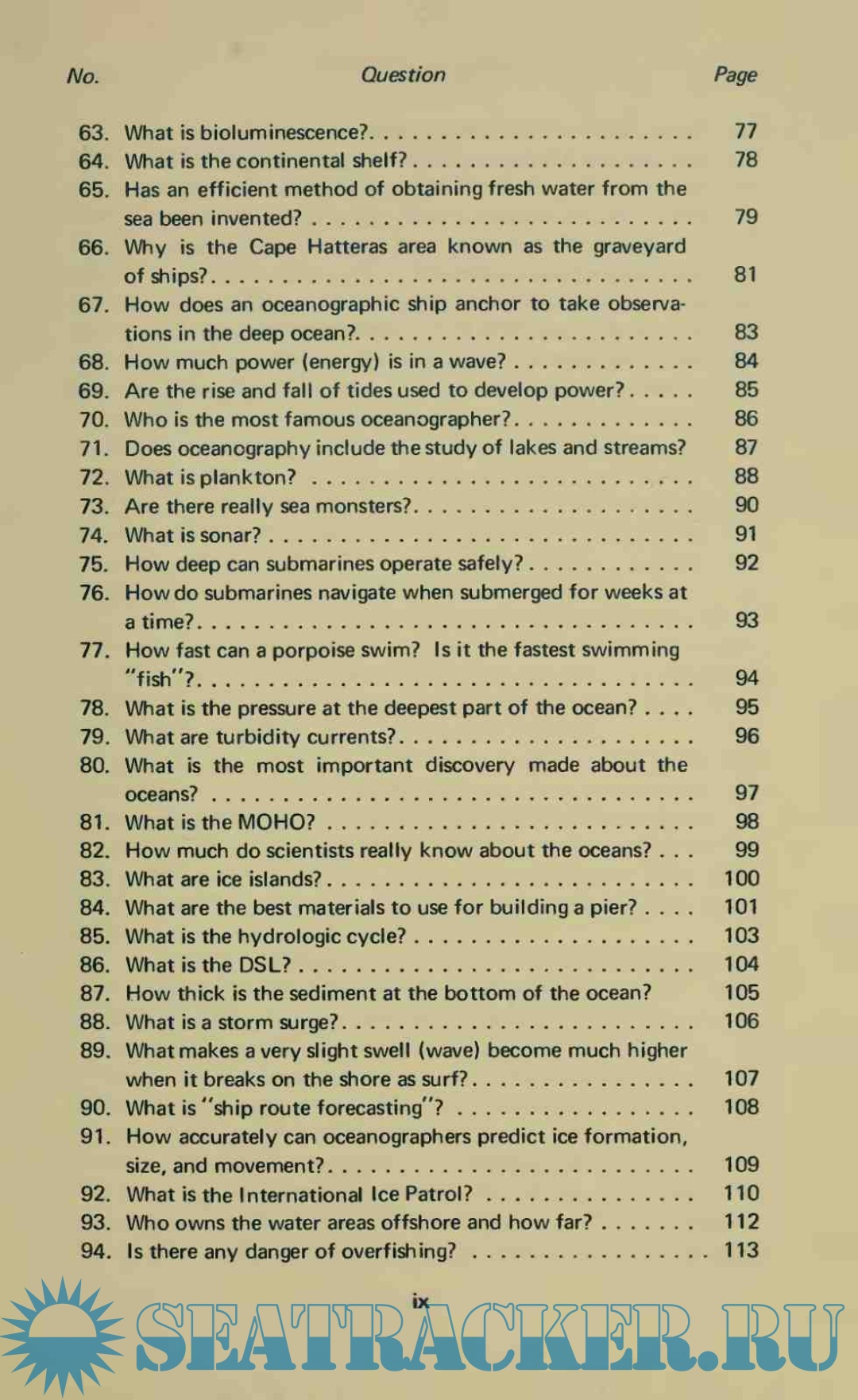 Year: 1968 Language: English Author: Dubach H.W., Taber R.W. Genre: Dictionary Publisher: U.S. Naval Oceanographic Office Format: PDF, DjVu Quality: Scanned pages Pages count: 137 Description: Questions about the Oceans: Why is the ocean blue? What makes the ocean salty? What is the source of the Gulf Stream? How does the fish take of the United States compare with How did seas such as the Black Red and White get their