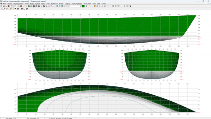 * Установлена абсцисса носового перпендикуляра и расчетного сечения бульба равной проектной длине.