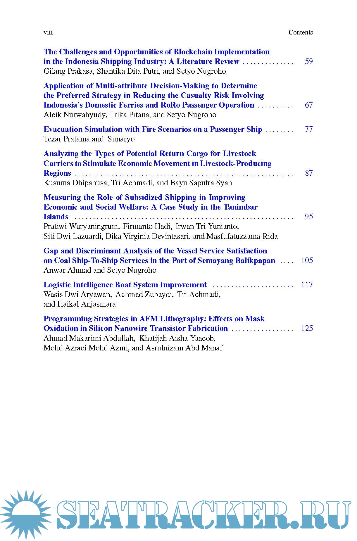 This book covers studies ranging from ship design and production technique comprising ship design process, ship hydrodynamics, ship structure and advanced ship material, and ship management and production technology. The book also examines the invention in marine operation, marine machinery and maintenance system, and marine safety including digital technology in marine system and safety. It also addresses the topics on coastal, ocean, and offshore technology starting from coastal/offshore hydrodynamics, ocean energy, mooring line analysis to offshore structure analysis. In addition, shipping, port, and marine logistic researches are also conveyed in this book especially on shipping operation optimization, port development, green port, and smart shipping development.