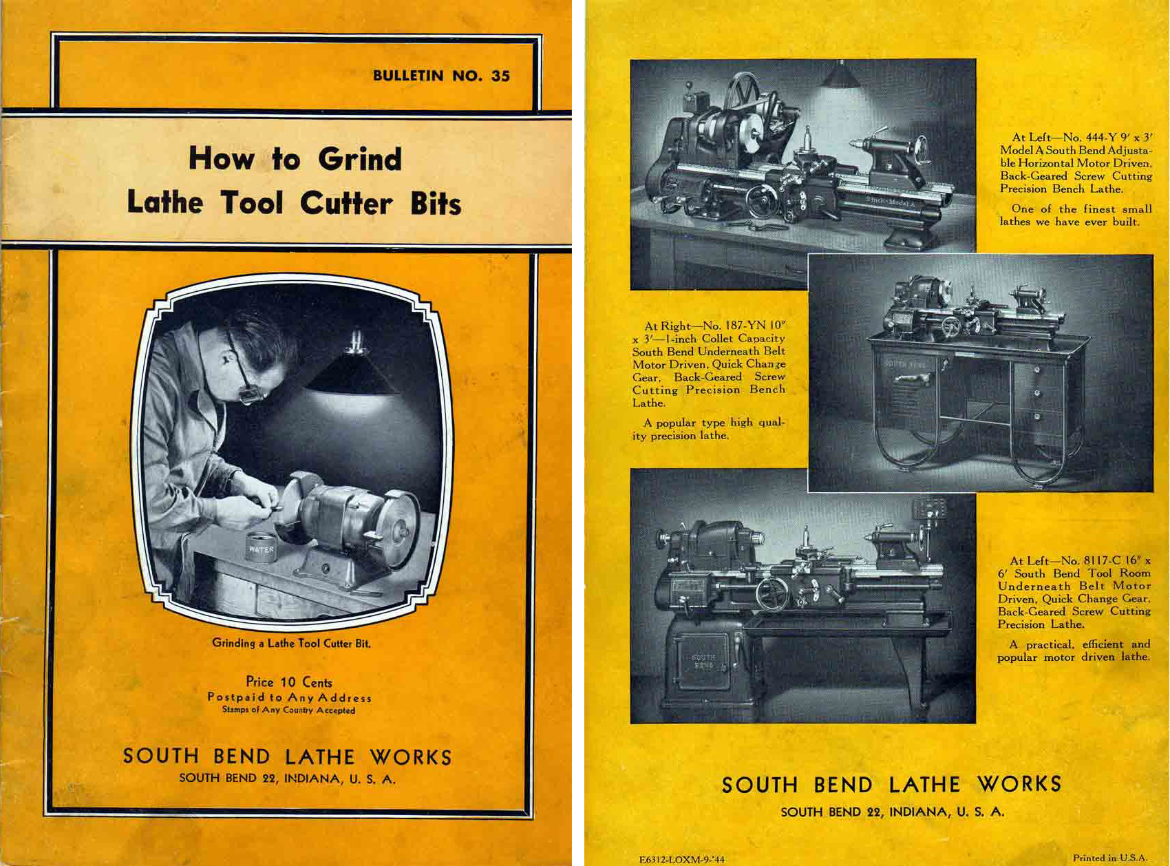 In this booklet the latest shop practice for grinding various types of lathe tool cutter bits is outlined. The methods shown are used in our own shop, where we operate 150 Back-Geared, Screw Cutting Lathes on all kinds of machine work.